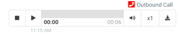 - Recorded calls with feature a play button, and you can click that to listen within the contact record. You will also see a stop button, volume button, and download button.